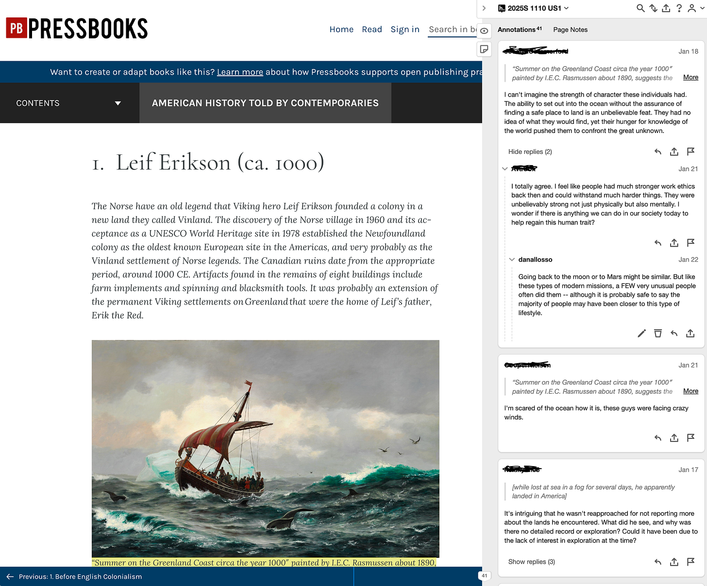 Reflecting on what students reacted to, in the first primary source, which was on Leif Erikson's adventure in Vinland ca. 1000, according to the Norse saga of the 1380s. It's interesting to me, to see what students thought was interesting or what they had questions about. I required them to respond to three things that "jumped out at them" in the short …